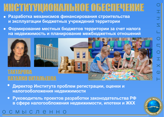 Совокупность институтов образует институциональную инфраструктуру рынка недвижимости территории.